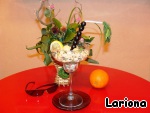 Подготовленные компоненты смешать, добавить соль и перец, заправить смесью лимонного сока, сметаны и соевого соуса. Оформить, как показано на фотографии. Салат выложить в бокал на высокой ножке или креманку, украсить долькой лимона и целыми шампиньонами, на коктейльную трубочку нанизать маслины и вставить пучок зелени. Приятного аппетита!