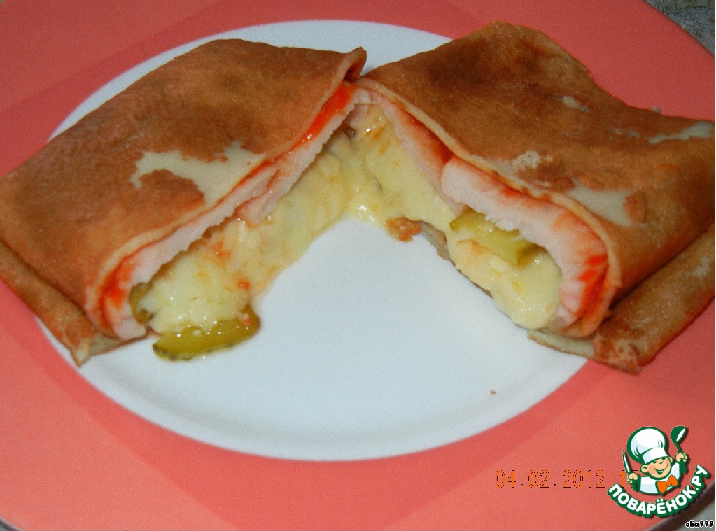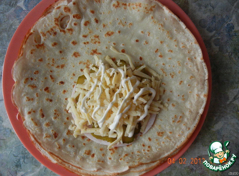 Рецепт «Конвертики из блинчиков с ветчиной»: