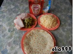 Ингредиенты для «Конвертики из блинчиков с ветчиной»: