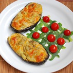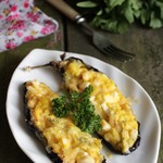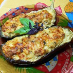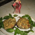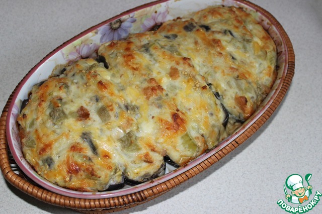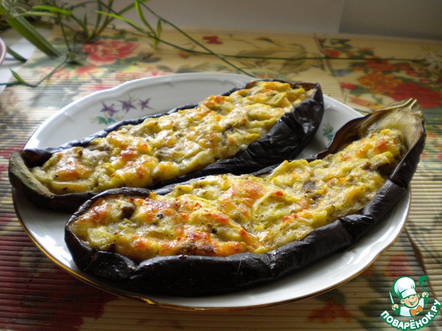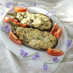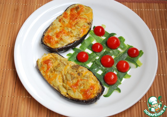 Начините баклажаны полученной смесью и примерно на 30 минут поставьте их в заранее разогретую духовку - 200*С.