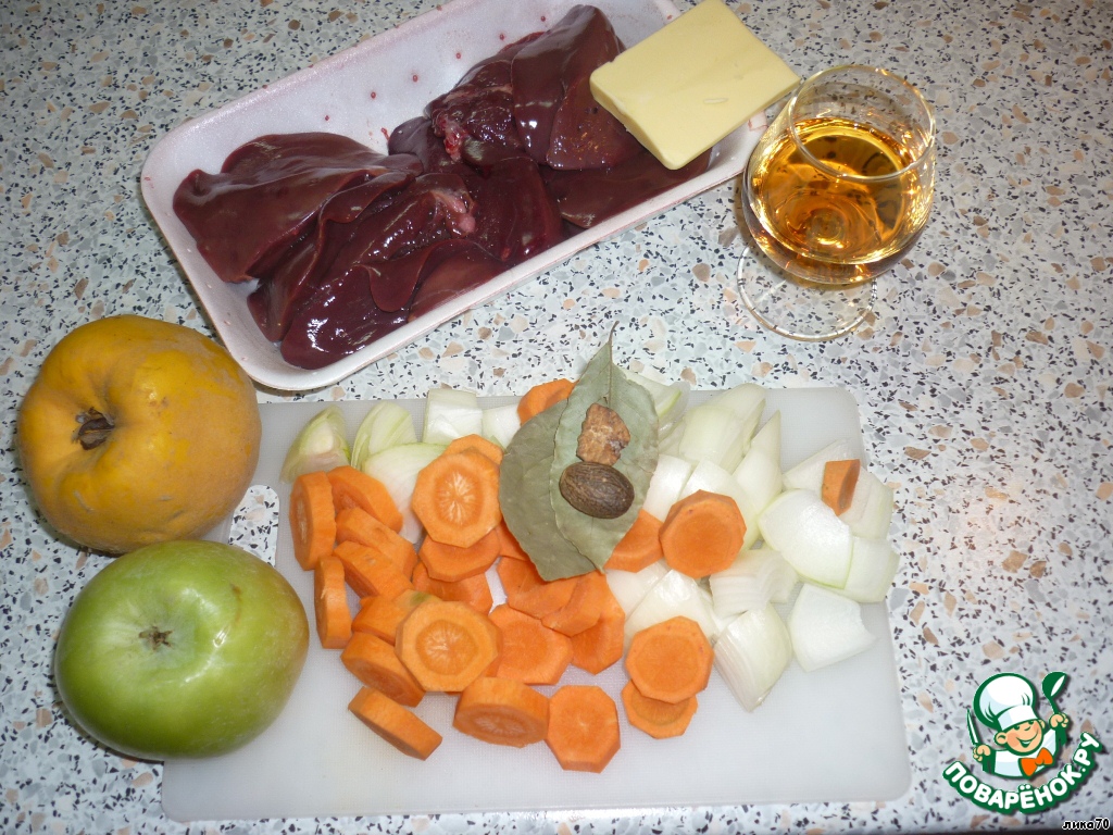 Печень лучше взять охлажденную. Яблоко использовать твердых сортов. Я использую в этом рецепте Семеринко(Гр.Смит), но Антоновка подошла бы ещё больше. Мускатный орех лучше натереть на терке непосредственно перед использованием.