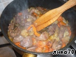 Накрыть крышкой, убавить огонь и тушить до мягкости моркови.