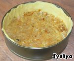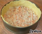 Тесто поделить на две части. Большую часть раскатать, уложить в разъемную форму.
