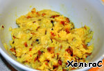 Соединяем жареный лук, отварной рис, картофельное пюре