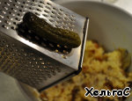 Для пикантности натрём соленые огурчики - если маленькие, то 3 штуки, если большой, то 1 - по вкусу