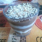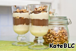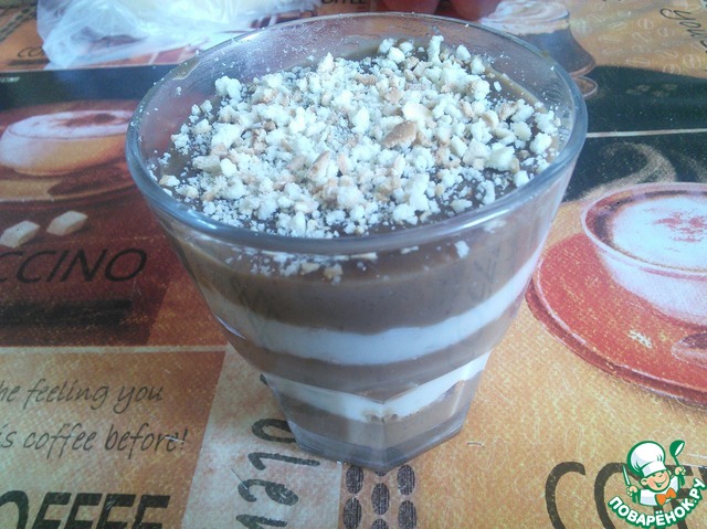 Разложить пудинги слоями в стаканчики, каждый слой присыпать измельченными орехами (печеньем, вафлями). Сверху тоже немного этой крошки. Можно украсить шоколадной стружкой.