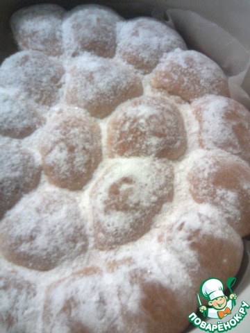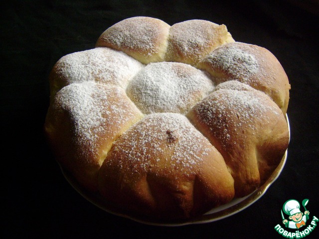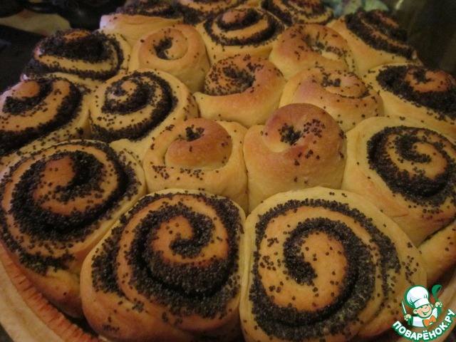 Раскатать тесто, вырезать 12 кружочков. В середину положить 1 ч. л. повидла, хорошо закрыть края (иначе начинка вытечет) и "швом" вниз уложить в форму. Накрыть полотенцем и дать подойти еще 30 минут. -