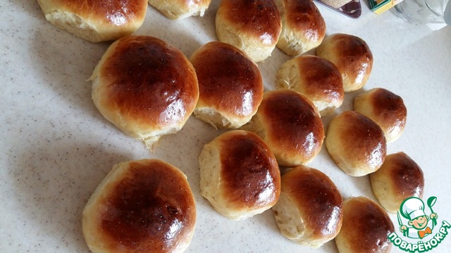 Смазать бухтели растопленным сливочным маслом и запекать при 160 градусах 40-50 минут. Время выпекания зависит от особенностей вашей духовки и размера бухтелей.