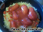 Положить 6 помидорок в собственном соку. По идее, их надо заранее измельчить.