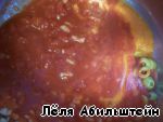 Обжарьте в масле одну мелко нарезанную луковицу до мягкости, добавьте 2 зубчика измельченного чеснока и 2 мелко нарезанных свежих чили. Для тех, кто не любит очень острое, достаточно будет 1 перчика чили, или вовсе половинки.