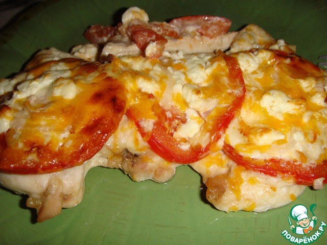 Рецепт «Отбивная из куриного филе с помидорами и сыром»: