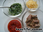 столовых ложек кипяченой холодной воды. Смешать. Домашняя аджика, отварное мясо. Тёртый сыр и 1 ст. л. изюма. -