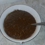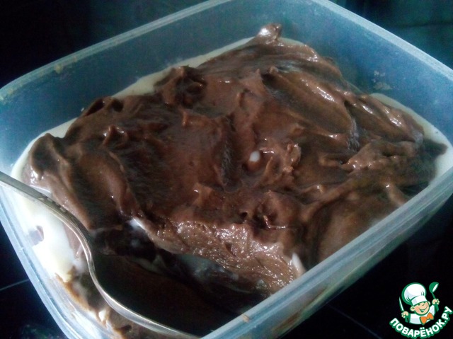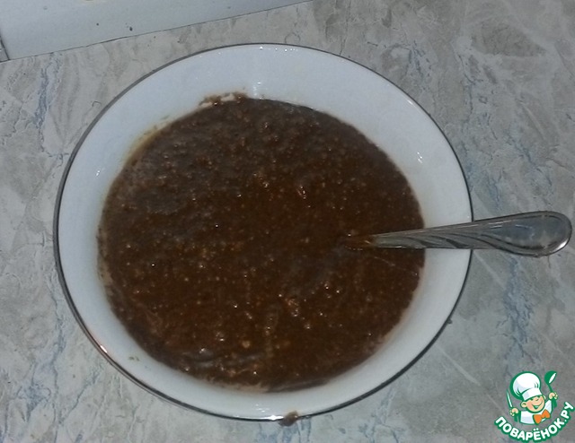 Вот что у нас получилось. Добавляем орехи и взбиваем последний раз. Насчет орехов - можно вообще без них, я пробовала, тоже очень вкусно. Можно любые и в любом количестве, по Вашему вкусу.