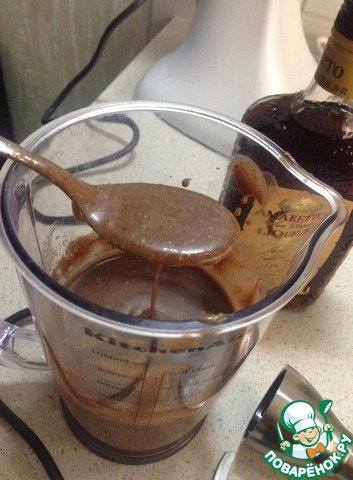 Добавляем какао-порошок и сухое молоко, еще раз взбиваем. Моему блендеру это далось с трудом :). Очень густо! Но это и хорошо. :)