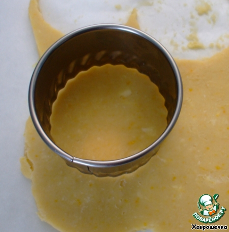 Делаем песочную основу. 115 г холодного соленого и 42 г холодного несоленого масла натрите на терке, добавить все остальные ингредиенты - 50 г сахарной пудры, щепотку соли (возьмите пару щепоток, если нет соленого масла), 6 граммов вареного яичного желтка, 142 грамма муки и 28 г крахмала.