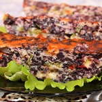 Романтический ужин для ковбоя, часть вторая. Весьма интересный рецепт и на вкус, и на вид. Хотела сказать, что готовится почти самостоятельно: рис сварить, а потом всe в духовку, короче, блюдо без хлопот. Также хочу заметить, что начинка придаeт удивительный вкус блюду и делает митлоаф сочным!!! Я только жалею, что не успеваю приготовить всe в один день (детки не дают) :)