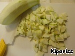Цуккини разрезаем вдоль пополам, затем ломтиками.