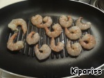 Обжарим креветки на раскаленной сковороде на оливковом масле с двух сторон.