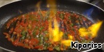 Влить самбуку и поджечь. Выглядело красиво! (В сковороде почти не должно остаться жидкости).