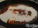 Вынуть креветки, в сковороду всыпать перец, помидоры и потушить.