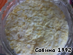 Укладываем в салатник и промазываем тонким слоем майонеза. -