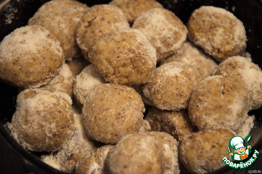 Достаем печенье из духовки и, пока оно еще горячее, обваливаем в сахарной пудре или кокосовой стружке. Можно обвалять еще раз, когда печенье остынет.