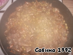 На сковороде растопить сливочное масло. Выложить грибы (у меня замороженные опята). Когда выкипит вода, добавить порезанный лук и тёртую морковь, порезанную индейку. Посолить, поперчить.