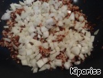 Добавляем в казан лук и обжариваем ещё 4 минуты.