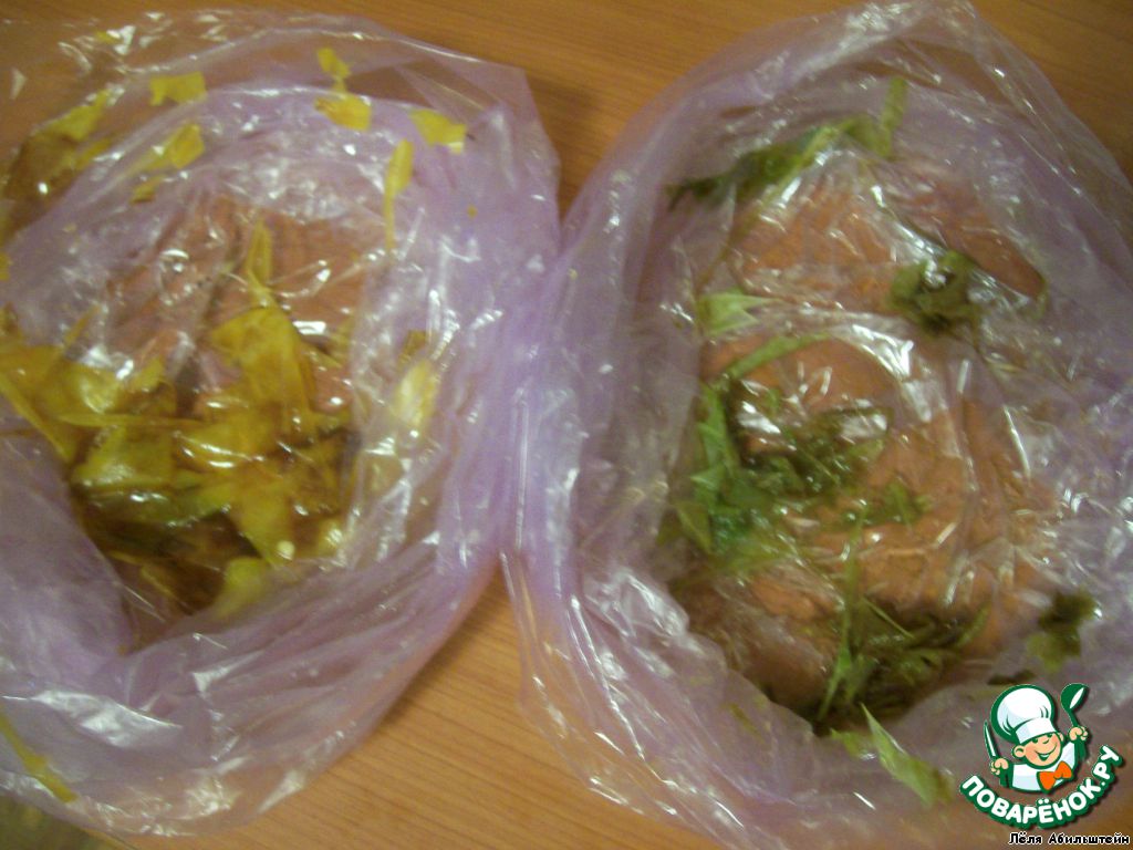 Достать из масла, поместить в пластиковые пакеты, туго завязать и подержать так 3 минуты.