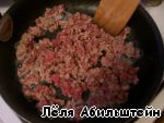 Обжарить фарш на сухой сковороде на сильном огне до изменения цвета.