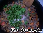 Добавить кинзу, соль и поперчить, перемешать и выключить огонь.