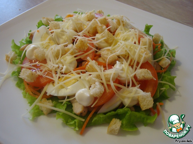 Затем добавить майонез и посыпать сухариками (лучше, разумеется, приготовленными самостоятельно).