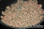 В сковороде на маленьком количестве жира поджарить фарш до румяности. (Можно добавить грибы - по желанию!)