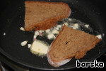 Ржаной хлеб нарезать кусочками. Разогреть на сковороде масло, добавить кусочки чеснока. Обжарить хлеб с обеих сторон. Вынуть на кухонное полотенце и дать стечь жиру.