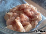 Филе нарезаем на небольшие кусочки, солим, добавляем любимые специи.