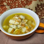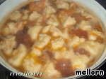 Затем в кипящий суп, отщипывая маленькие кусочки, отправить галушки.