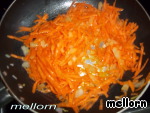 На сковороде пассеровать в 2-3 стол. ложках растительного масла лук и морковь (лук мелко порезать, а морковь натереть на терке). В конце добавить томатную пасту (можно кетчуп).