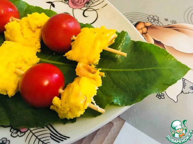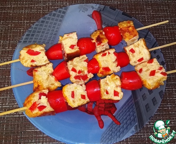 Рецепт «Омлет с сыром и перцем на шпажках»: