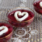 Аккуратно раскладываем наш крем по креманкам на кисель. Декорируем, для этого обводим крем тонкой палочкой или зубачисткой, придавая желаемую форму. Я нарисовала сердце)