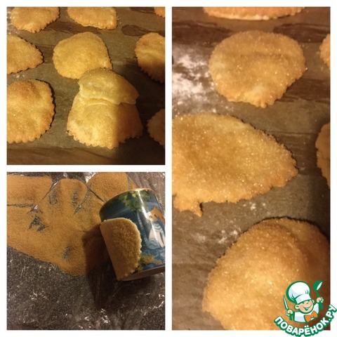 Укладываем на противень на расстоянии 3-х см друг от друга. Во время выпечки печенье увеличивается в объеме и расслаивается. Я готовила по этому рецепту уже много раз, и у меня почти никогда они сильно не увеличивались, но расслаиваются всегда :)