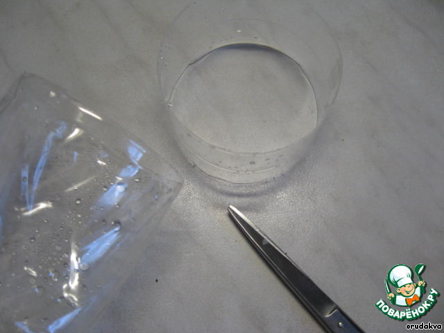 Хочу остановиться на этом подробнее, т.к. однажды кому-то в комментариях я советовала сделать, если нет кольца для пирожных, вот такую форму самому. Но Поваренок меня не понял. Надеюсь, Поваренок увидит это в моем рецепте и поймет, что я имела в виду.