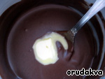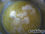 Убираем кастрюлю с плиты и добавляем в неё 20г сливочного масла. Перемешиваем так, чтоб масло растаяло и смешалось с другими ингредиентами.