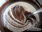 Смешиваем с 1ст.л. какао. Если печенье у вас шоколадное, то какао добавлять не нужно!