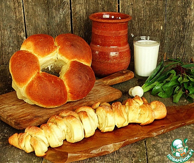 Тесто выложить на стол (не забываем присыпать его мукой) и формируем из него то, что вы хотите. Можно в виде одного батона, можно сделать два. А можно так, как делала я.