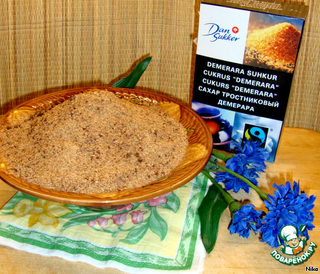 - Сахар (коричневый и белый, для сухарей и в сливки 150/50) — 200 г