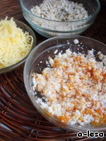 В массу добавить сыр, хлопья (замачивать предварительно не нужно), соль, перец и специи по вкусу.