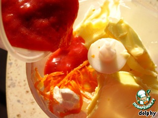 Для клубничного: в чаше блендера соедините 130 г масла комнатной температуры, 1 ст. л. сахарной пудры, 1 ч. л. апельсиновой цедры и клубничное пюре. -