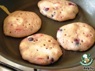 На среднем огне разогрейте сковороду с небольшим количеством растительного масла. Выкладывайте по 1 ст. л. теста на некотором расстоянии друг от друга. Жарьте, пока поверхность не подсушится и не покроется пузырьками (для скорости можно под крышкой).