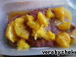Маринуем в соке апельсинов вместе с мякотью 1 час в холодильнике.