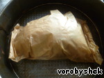Запекать в горячей духовке 20 минут при 180 градусах, затем 30 минут при 200 градусах, раскрыть пергамент и еще 30 минут при 220 градусах. -